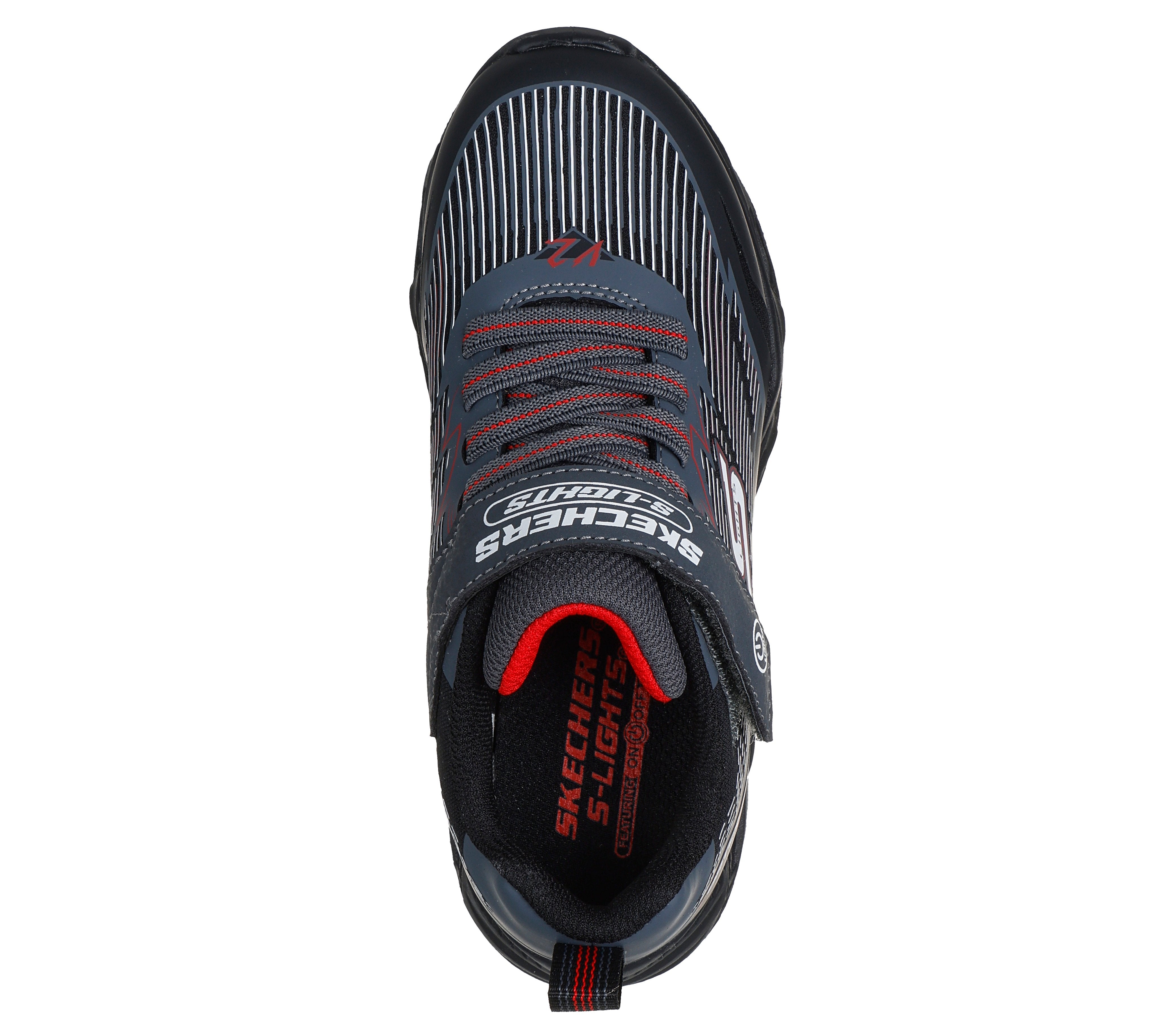 Step into action and light up every move with the black and grey Skechers Vortex 2.0! These fun and sporty sneakers are designed for toddlers and big kids, delivering bold style, vibrant light-up action, and all-day comfort. With breathable mesh, a shock-absorbing midsole, and an easy-on adjustable strap, these shoes are perfect for school, play, and everything in between.